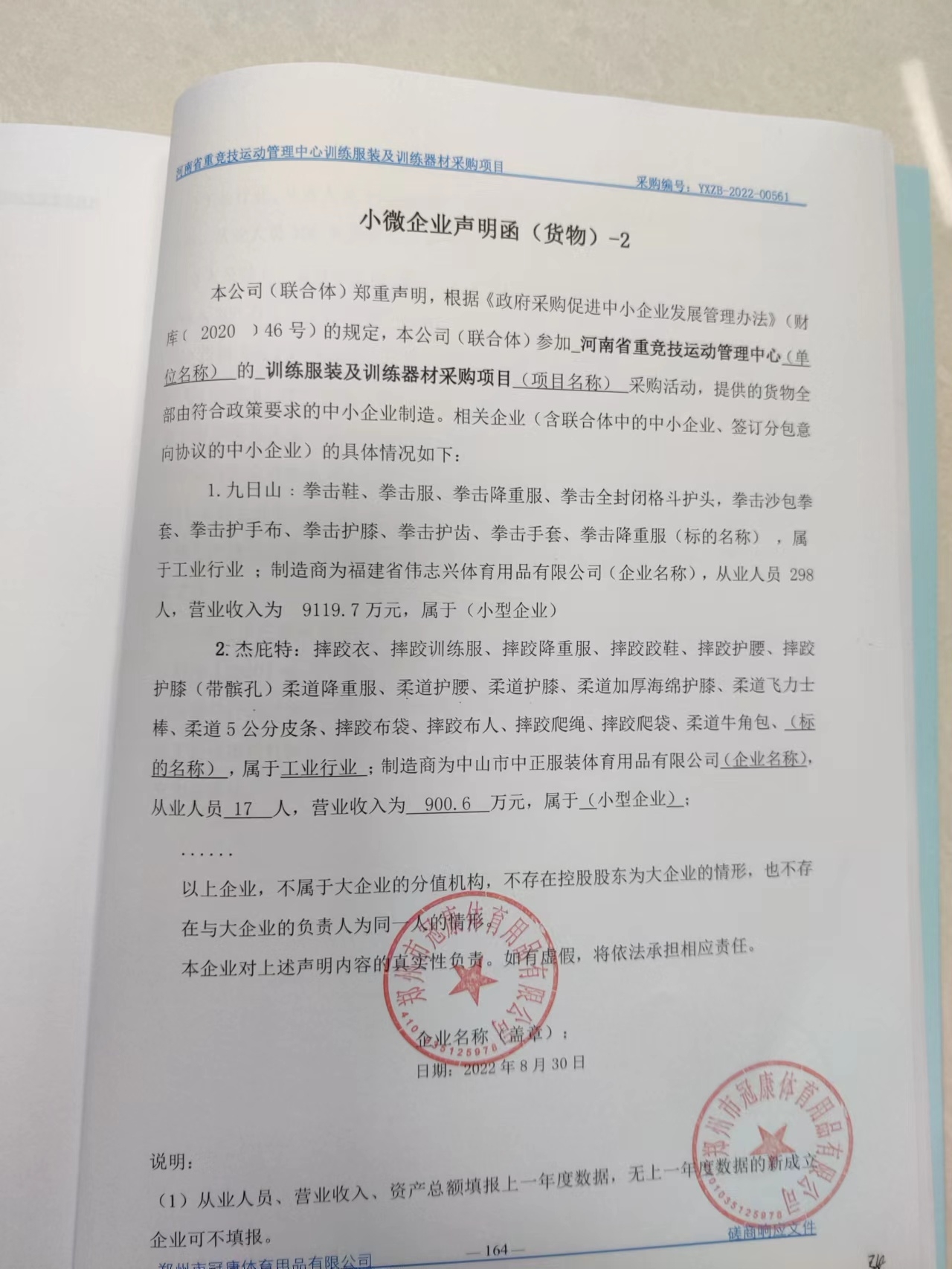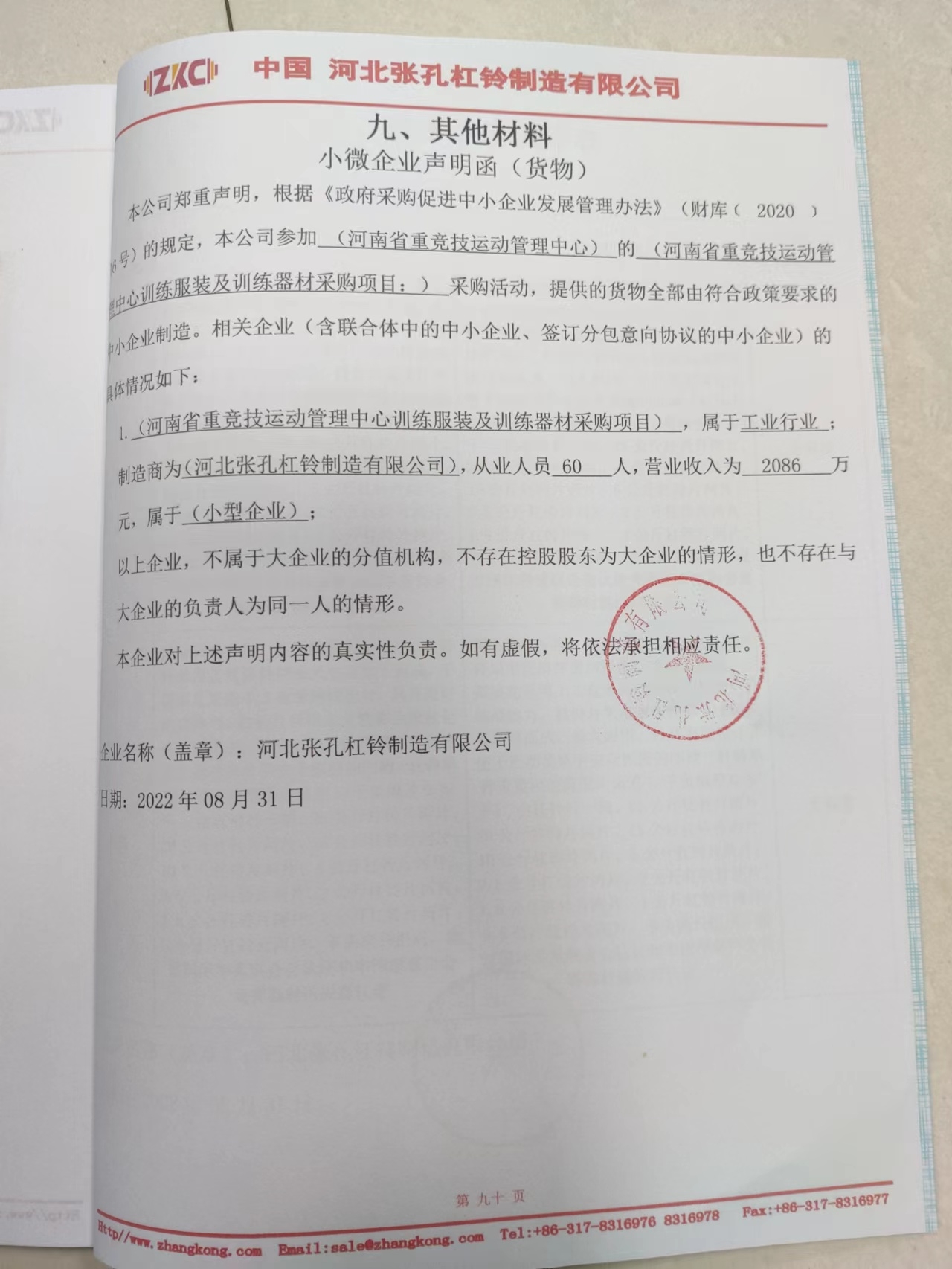 一、采購項目名稱:河南省重競技運動管理中心訓練服裝及訓練器材采購項目