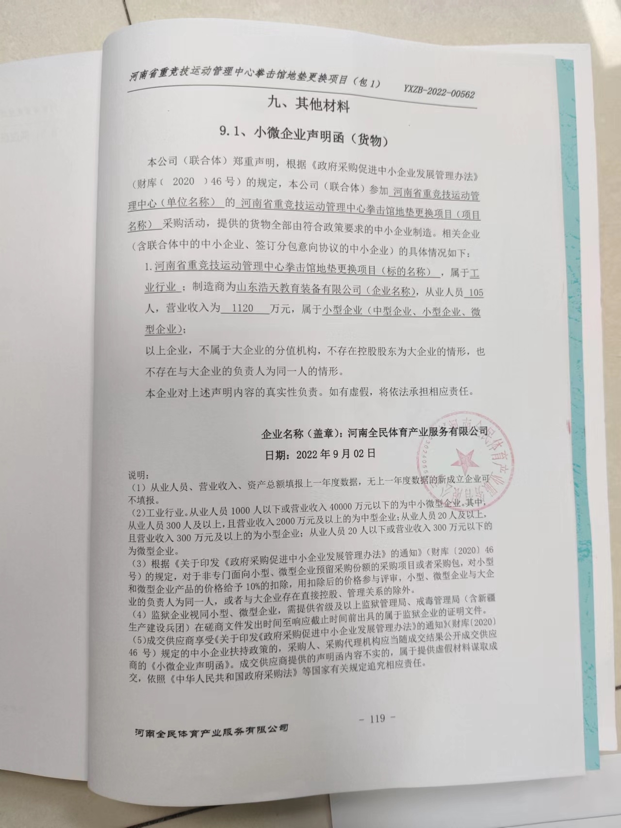 一、采購項目名稱:河南省重競技運動管理中心拳擊館地墊更換項目