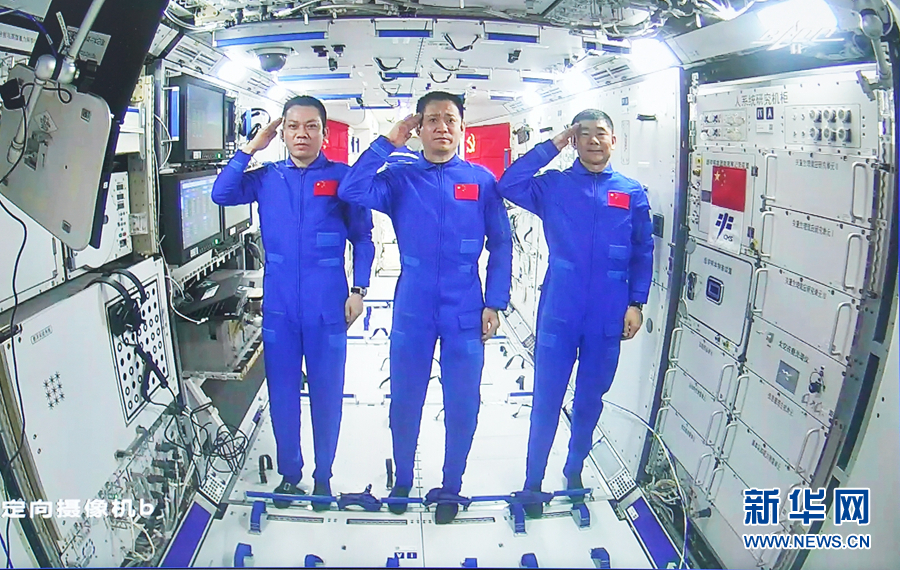 代表黨中央、國務院和中央軍委,代表全國各族人民,向航天員聶海勝、劉伯明、湯洪波表示誠摯問候