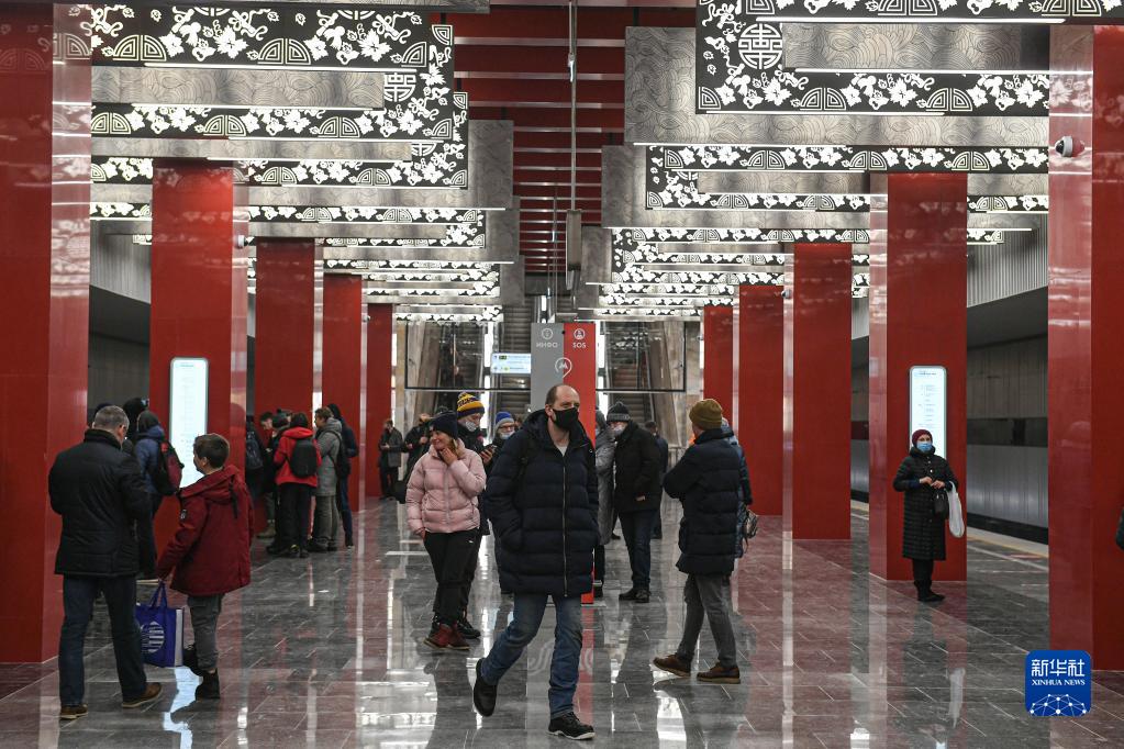 2021年12月7日,在俄羅斯首都莫斯科,乘客走在莫斯科地鐵第三換乘環(huán)線西南段米丘林大街站內。中企在俄羅斯承建的首個地鐵項目——莫斯科地鐵第三換乘環(huán)線西南段項目當日開通。新華社發(fā)(葉甫蓋尼·西尼岑 攝)