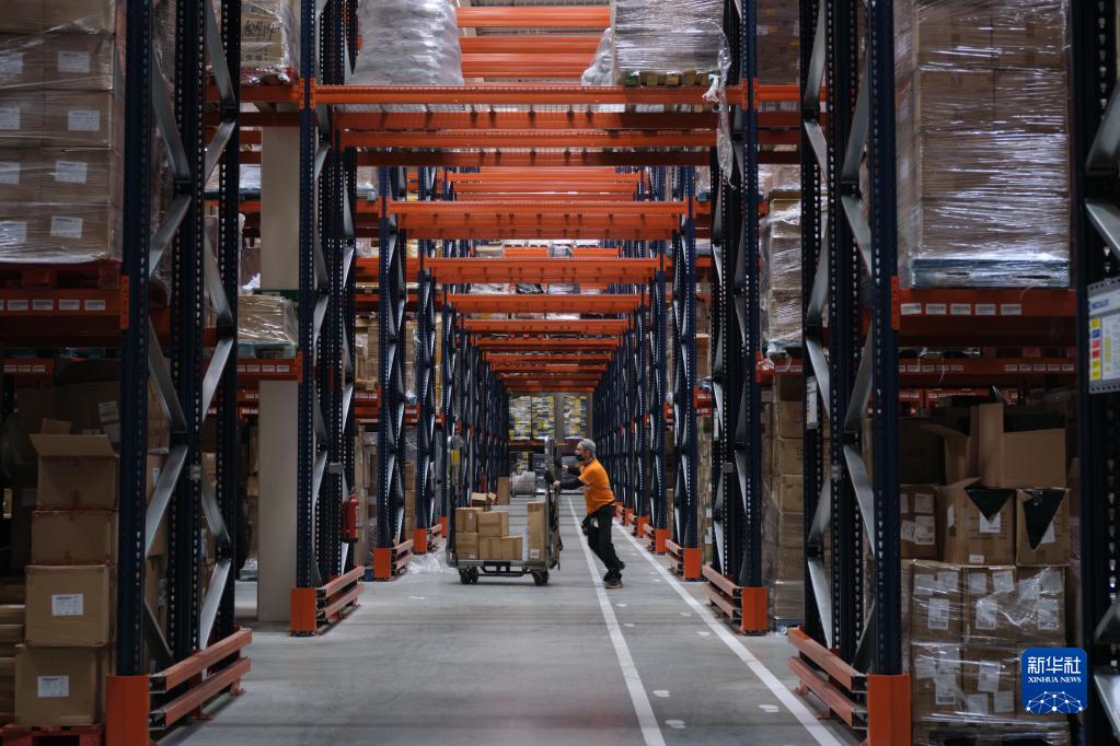 2021年11月11日,工作人員在西班牙瓜達拉哈拉市的菜鳥網(wǎng)絡所設立的海外倉中工作。新華社記者 孟鼎博 攝