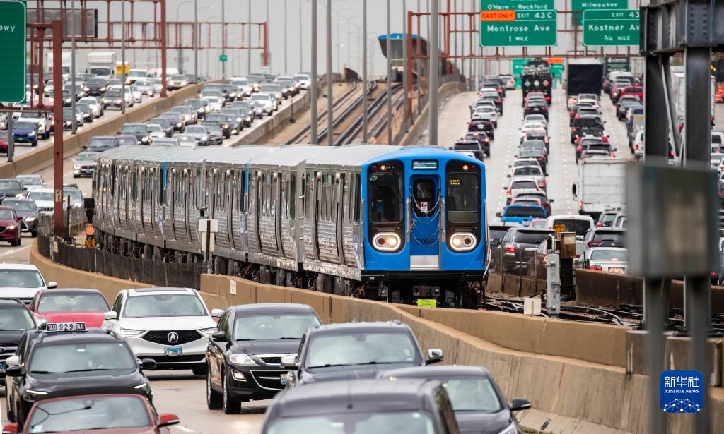 2021年5月6日,掛有7000系列車廂的地鐵列車在美國芝加哥載客試運行。7000系列地鐵車廂由中國中車青島四方機車車輛股份有限公司(中車四方)在美國制造組裝。新華社發(fā)(喬爾·萊納 攝)