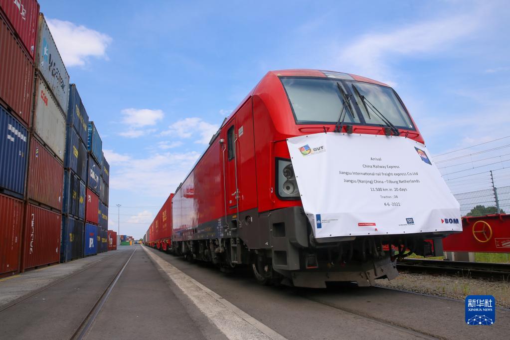 2021年6月4日,首趟從中國江蘇南京至荷蘭蒂爾堡的中歐班列抵達荷蘭蒂爾堡。新華社記者 鄭煥松 攝