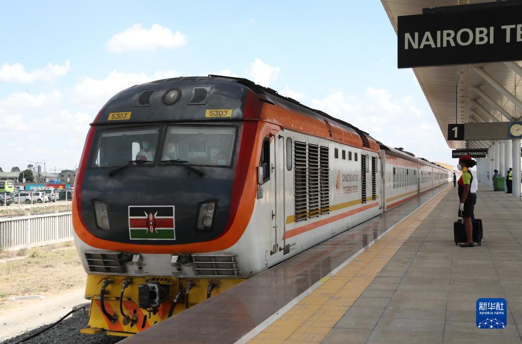 2021年11月17日,由蒙巴薩始發(fā)的蒙內鐵路客運列車駛入肯尼亞內羅畢站。蒙內鐵路連接東非第一大港口蒙巴薩和肯首都內羅畢,于2017年5月31日開通。新華社記者 董江輝 攝