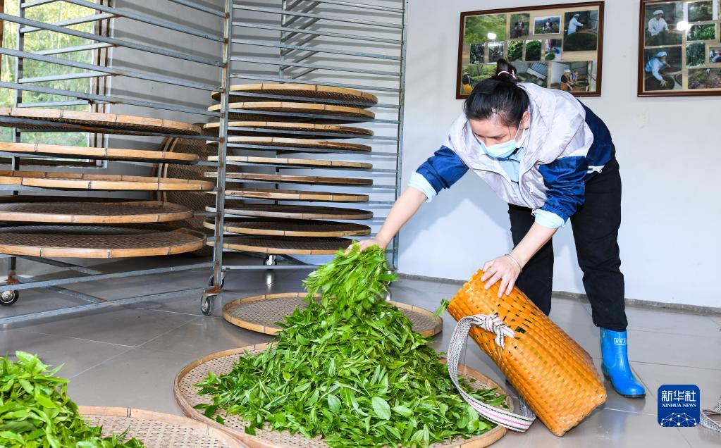 4月10日,在海南省五指山市水滿鄉毛納村,茶農在手工茶坊內工作。新華社記者 楊冠宇 攝