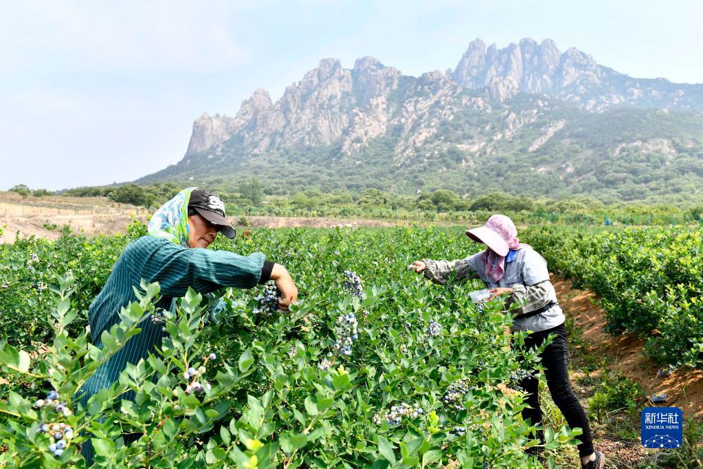 村民在山東省五蓮縣九五農業現代林果科技產業園采摘藍莓(2022年6月18日攝)。新華社記者 郭緒雷 攝