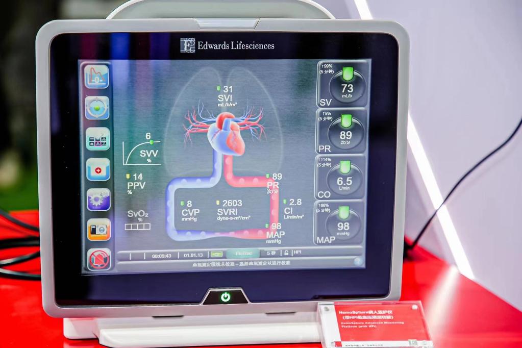第四屆進博會上的愛德華生命科學展臺里,全新一代HemoSphere病人監護儀正在展示。(受訪對象提供)
