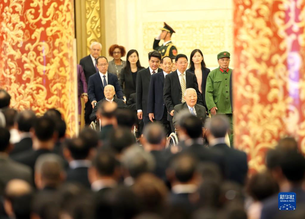 2019年9月29日,國家勛章和國家榮譽稱號獲得者進入人民大會堂金色大廳。當日上午10時,中華人民共和國國家勛章和國家榮譽稱號頒授儀式在北京人民大會堂隆重舉行。新華社記者 姚大偉 攝