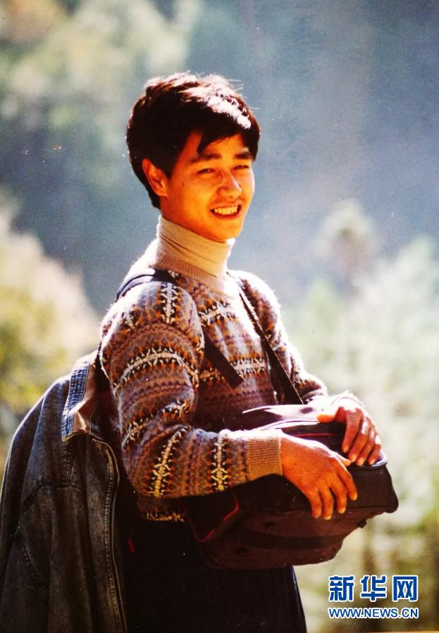 四川省江油市小壩村原黨支部書記青方華24歲時背著炸藥上山修路(翻拍資料照片)。新華社發