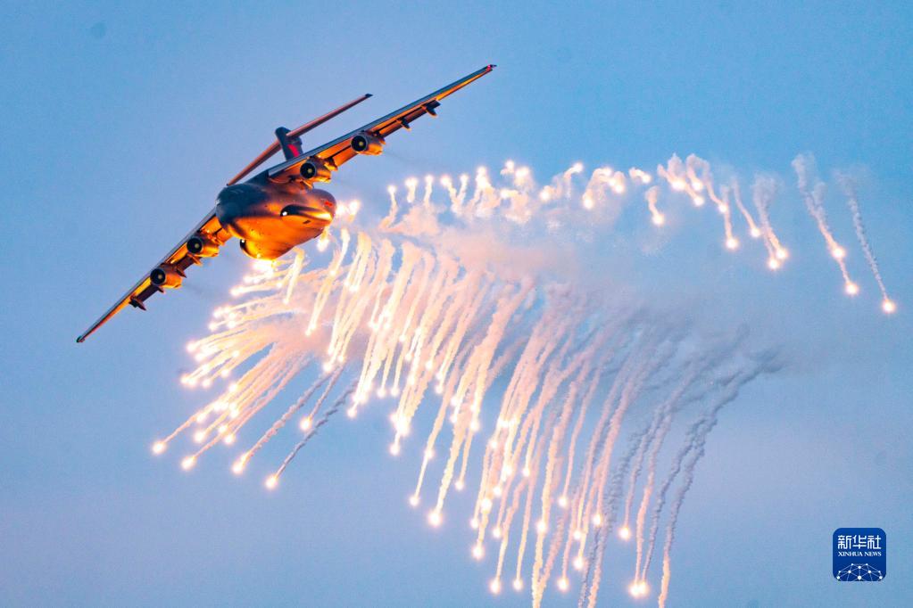 中部戰(zhàn)區(qū)空軍航空兵某團運-20飛機進行釋放干擾彈訓練(2020年12月10日攝)。新華社發(fā)(張猛 攝)