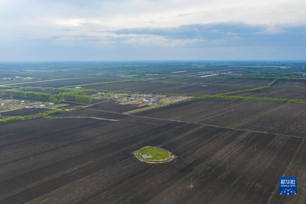 這是黑龍江省海倫市前進鎮光榮村已完成播種的黑土耕地(無人機照片,2022年5月23日攝)。新華社記者 謝劍飛 攝