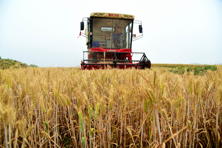 小滿過后,豐收在即。5月25日,在安徽壽縣小甸鎮楊圩村,36臺聯合收割機齊下田,隨著齒輪轉動,2萬多畝麥田正式開鐮收割。“今年,我們麥田實行網格化管理,種子、化肥等農資統一供應,麥子成熟時公司統一安排機械收割并對外掛網銷售。”小麥托管經營者張宇說。