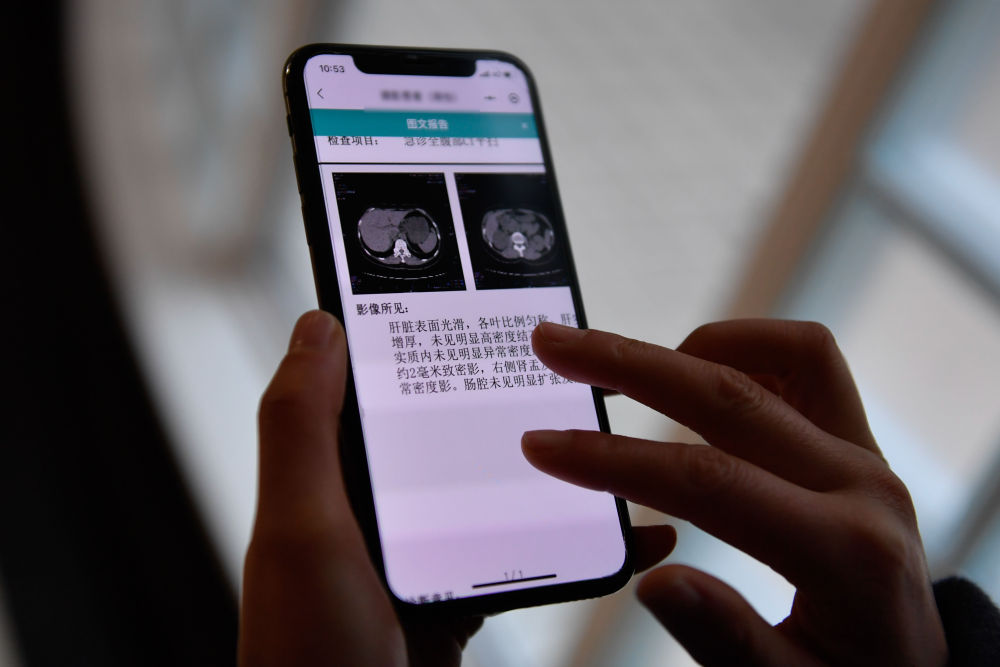 2021年1月20日,在杭州市余杭區(qū)第一人民醫(yī)院,居民通過(guò)手機(jī)使用“健康余杭智慧云共享平臺(tái)”查看檢查圖文報(bào)告。新華社記者 黃宗治 攝